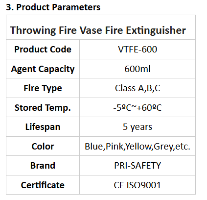 Brand OEM Handy 600ml Fire Vase Throwing Type Fire Extinguisher Firevase Extinguisher