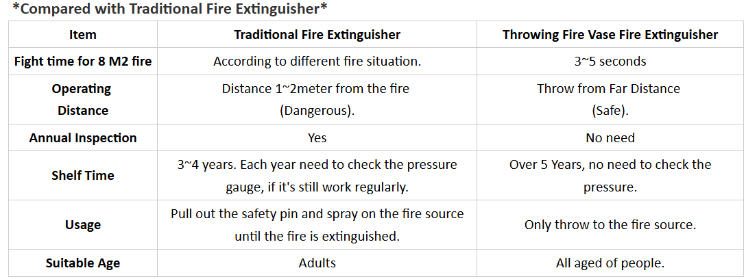 The cost of fire vase fire extinguisher is much cheaper than traditional fire extinguishers.