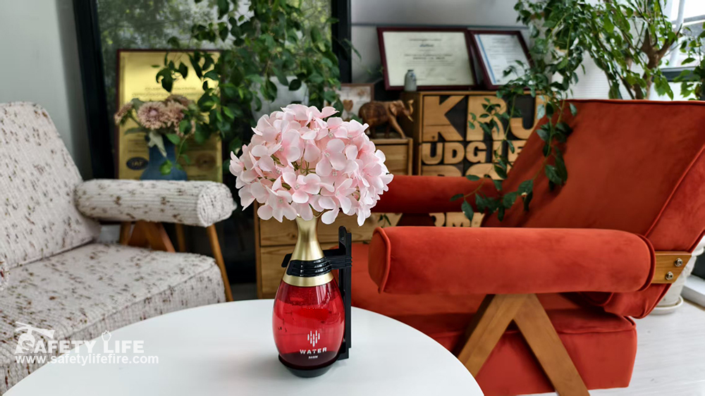 fire vase fire extinguisher was designed to emergency fire extinguishing, but it also can be used as a flower vase and a decorative piece. The agent in the bottle is a special cleam fire chemical that can extinguish Class A,Class B and Class C fires.